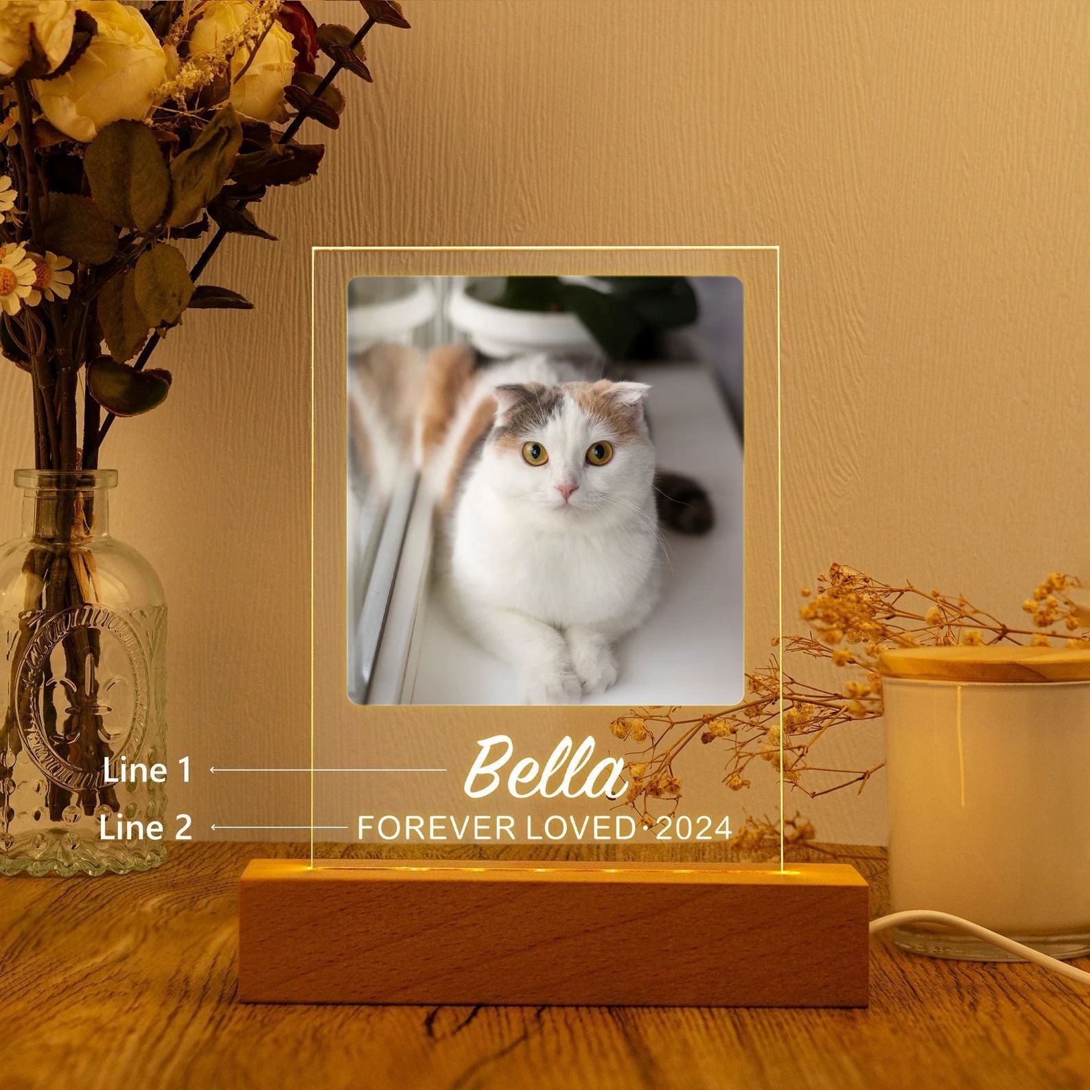 Showcase your favorite memories with this modern LED acrylic photo frame. Designed as a stylish desktop ornament, it features a crystal-clear 5mm acrylic panel paired with a premium beech wood or peach/beech mixed wood LED base. Available in 7-inch, 8-inch, and 10-inch sizes, it adds a warm, ambient glow to any room—perfect for home décor, office desks, or gifting.